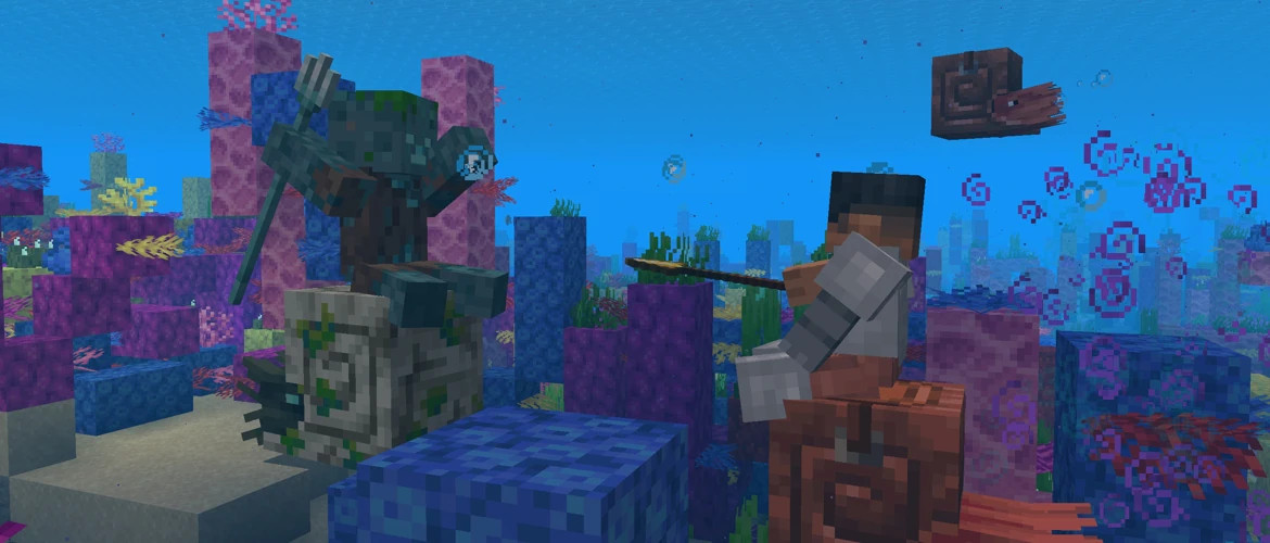 • Zombie Nautilus is a new underwater mob that spawns with a Drowned rider wielding a Trident